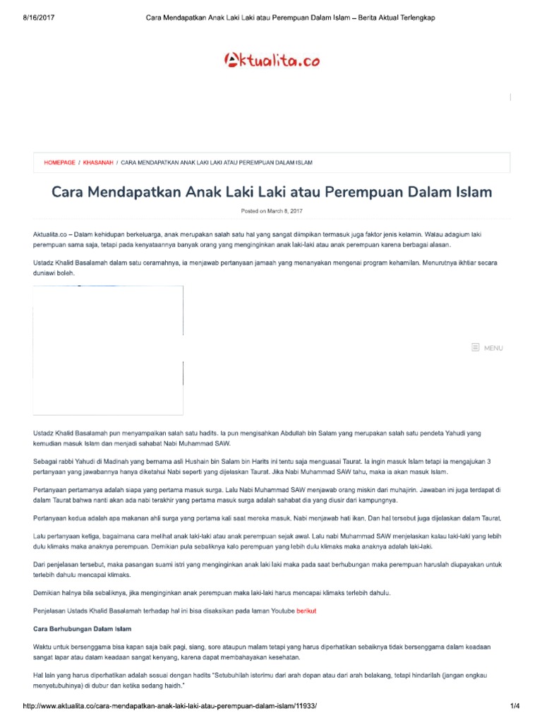 Related : Cara Mendapatkan Anak Perempuan Menurut Islam : Antara Petua Dan Doa Untuk Mengandung Anak Kembar Cara Islam - Rahasia ingin bayi laki laki atau perempuan nabi muhammad saw nov jika menginginkan seorang bayi perempuan suami harus menghindari tusukan yang dalam kedalam kemaluan istri..